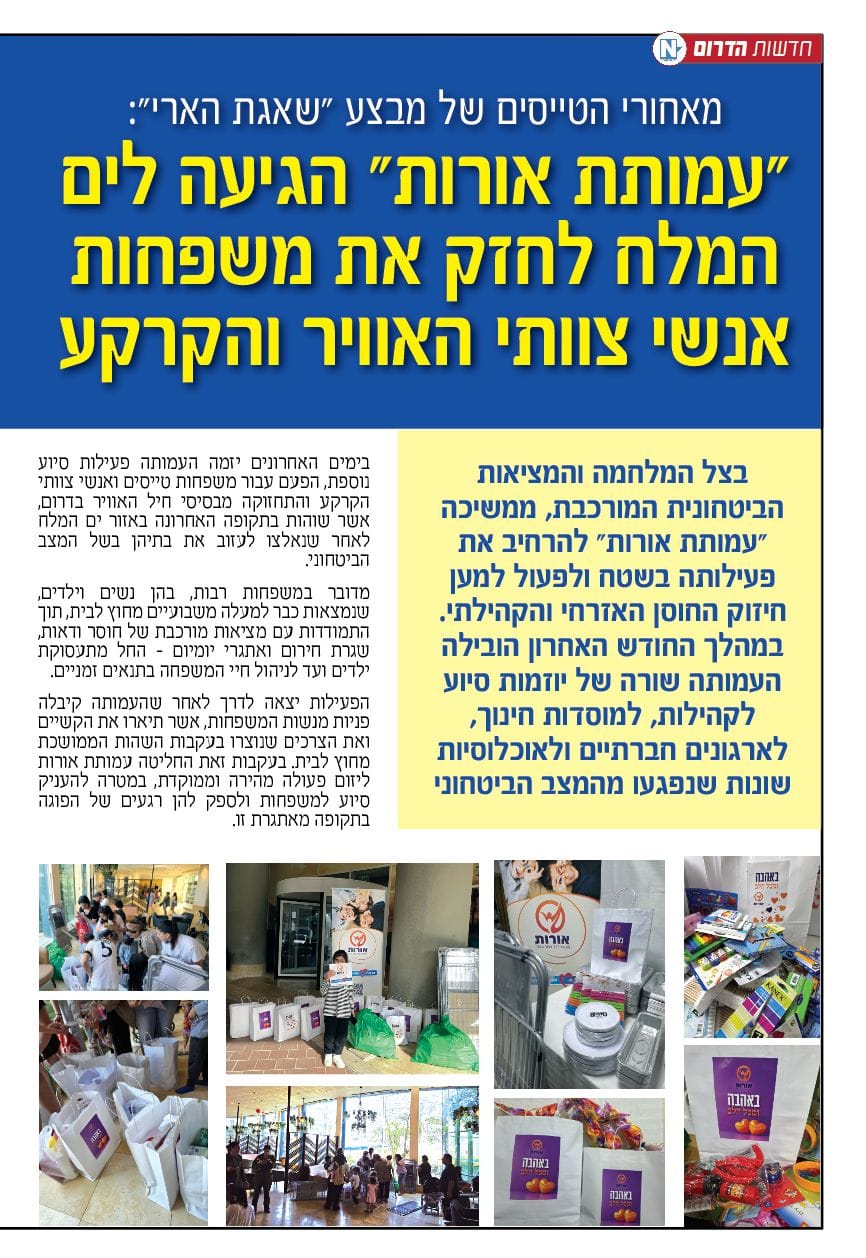אם בימי שגרה פועלים בעמותת 'אורות להאיר' לטובת משפחות הרווחה, החולים והנזקקים, בזמני חירום העשייה מתרחבת וגדלה, והמענים מותאמים באופן מדויק לדרישות העולות מתוך השטח. בתקופת הקורונה עמלו מתנדבי הארגון לסייע בכל דרך למאות משפחות שנקלעו למצוקה רפואית, כלכלית ואישית, ושיגרו סיוע חיוני ונחוץ, במלוא האכפתיות ומתוך מסירות מופלאה. המתנדבים לא נחו לרגע, והיו ערים לכל בקשה או פנייה. כי כשעם ישראל נמצא בצרה, עמותת אורות להאיר מגשימה את חזונה וממלאת את שליחותה באופן מיטבי. גם בימי המלחמה הקשים, מתנדבי העמותה אינם שוקטים לרגע, לכל אורך הדרך מתקיים מערך חירום עוצמתי, הכולל חלוקת אוכל מזין וחם לחיילים בחזית, וסיוע כלכלי וטכני למשפחות המתמודדות שנמצאות בעורף. סלוגן המלחמה 'ביחד ננצח' הופך ב'אורות להאיר' למטרה וערך, יחד עמלים להאיר לכל אחד ואחת, לתת מענה מיידי ולהיות שם עם אוזן קשבת, לב רחום וידיים מושטות לעזרה.