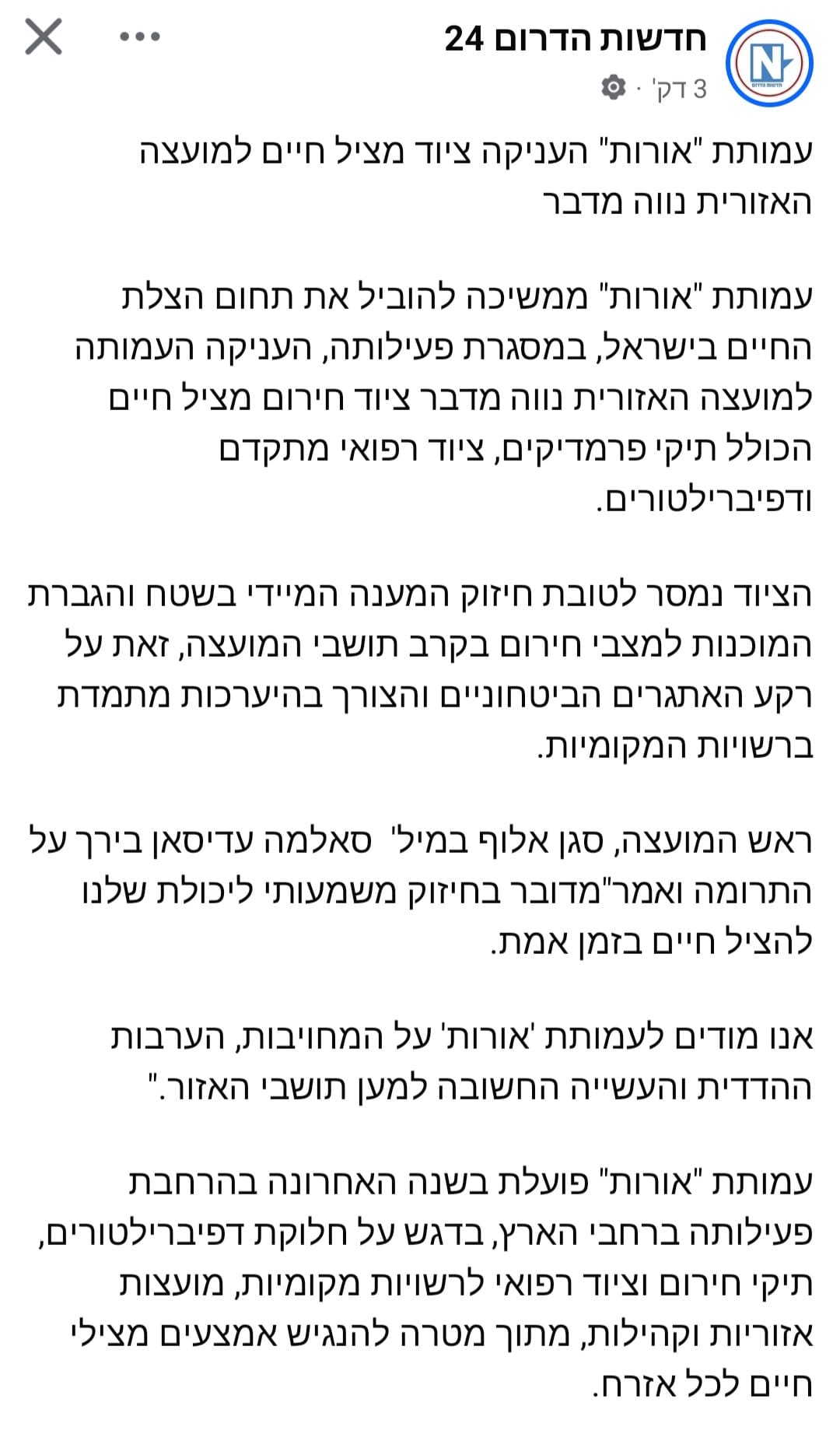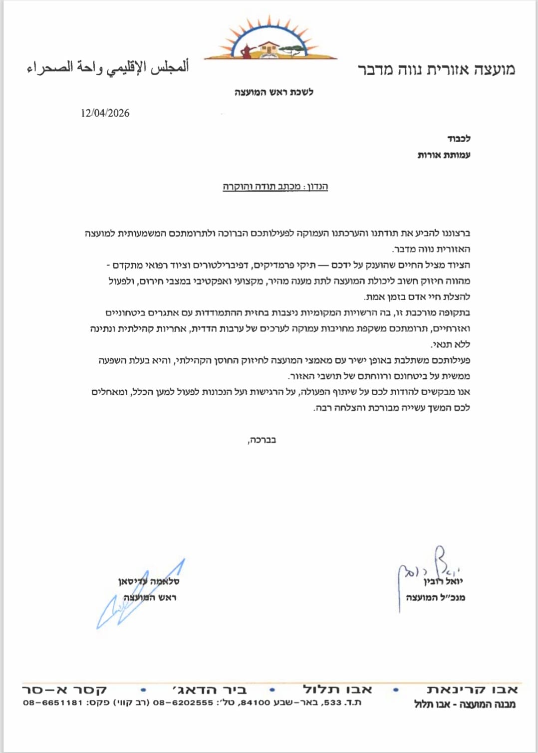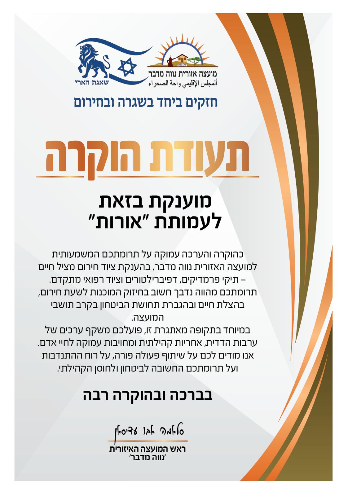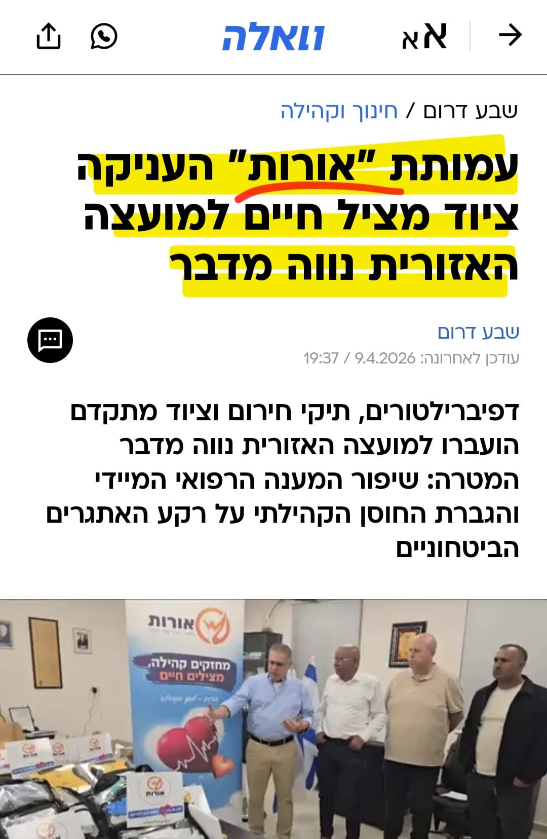 הענקת ציוד מציל חיים מועצה איזורית "נווה מדבר"