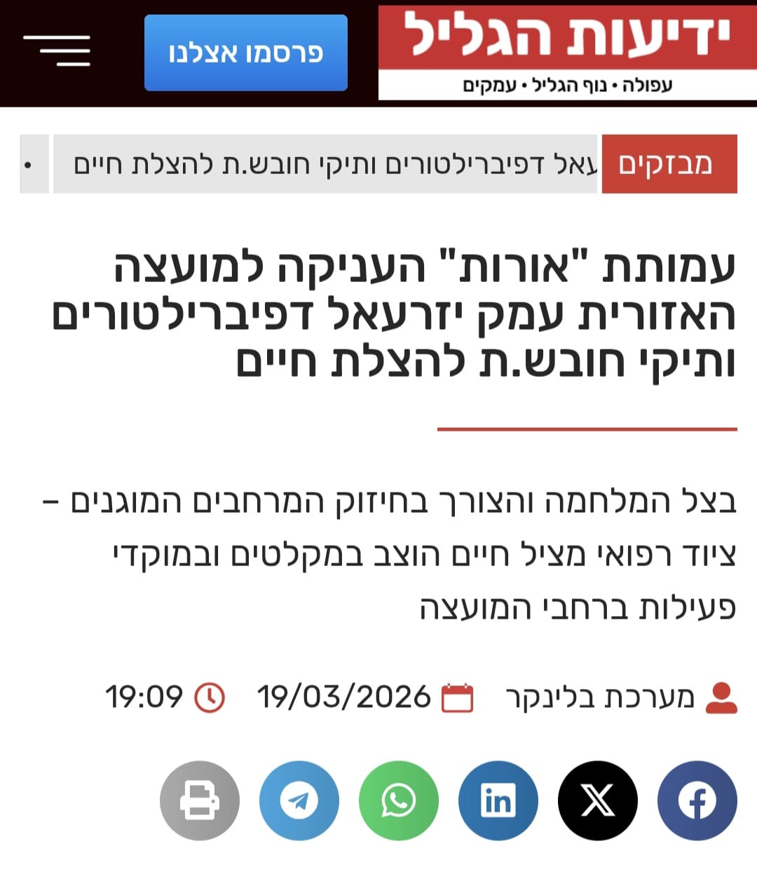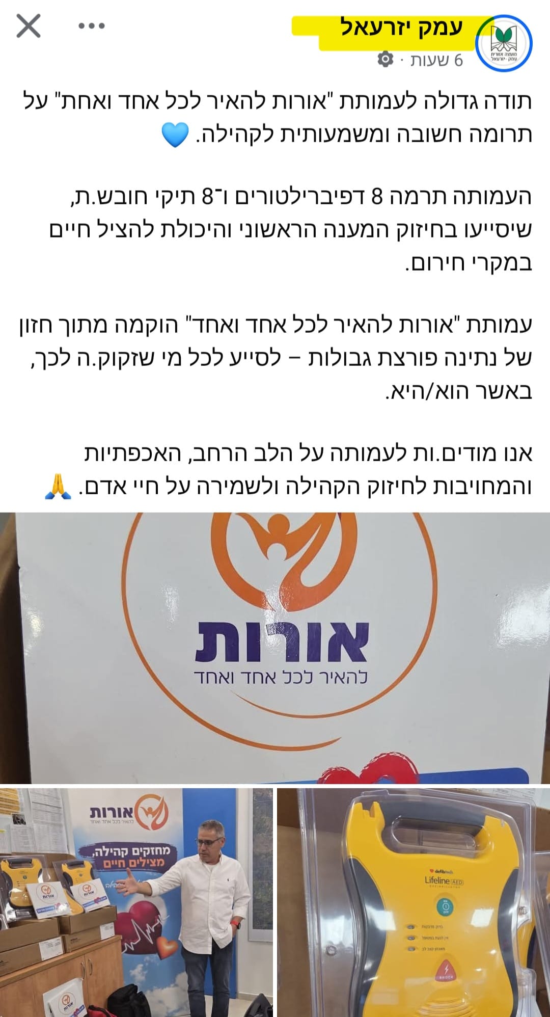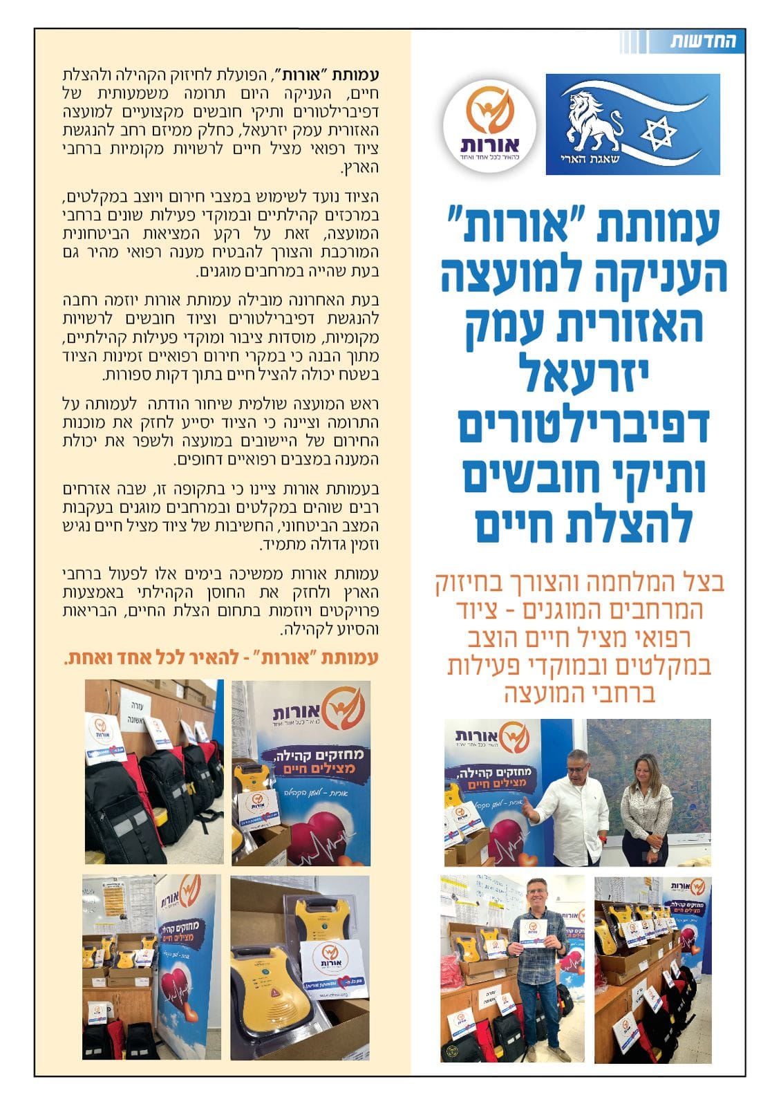 חלוקת דפיברילטורים ותיקי חובש מ.א עמק יזרעאל